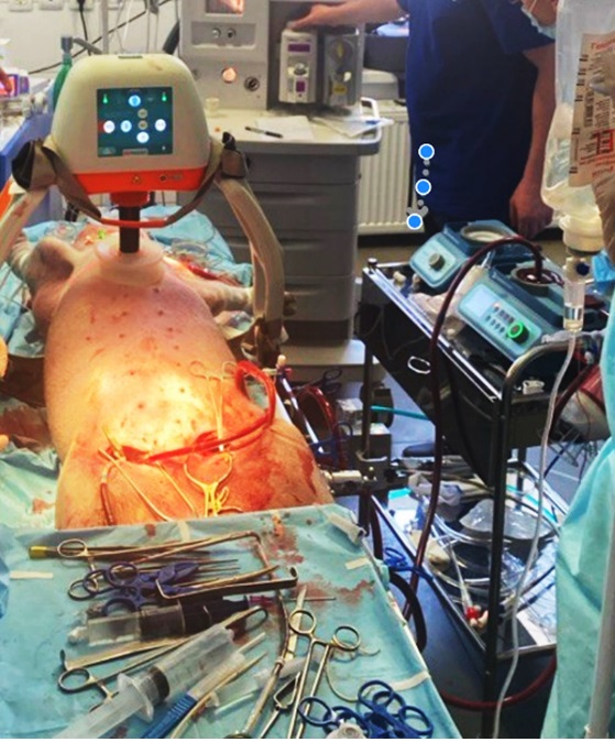 Особый интерес вызвала работа с экспериментальными животными, показавшая участникам курса технику операционных манипуляций хирурга при выполнении доступа к бедренной артерии, установке и замене интродьюсера, ввода и позиционировании баллона вслепую, проведение ЭКМО в вено-венозном и вено-артериальном режимах.