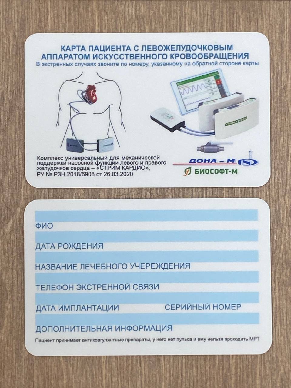 Для обеспечения комфортных условий прохождения досмотра в общественных местах выпущена первая партия карточек владельцев аппарата «Комплекс универсальный для механической поддержки насосной функции левого и правого желудочков сердца – «СТРИМ КАРДИО».